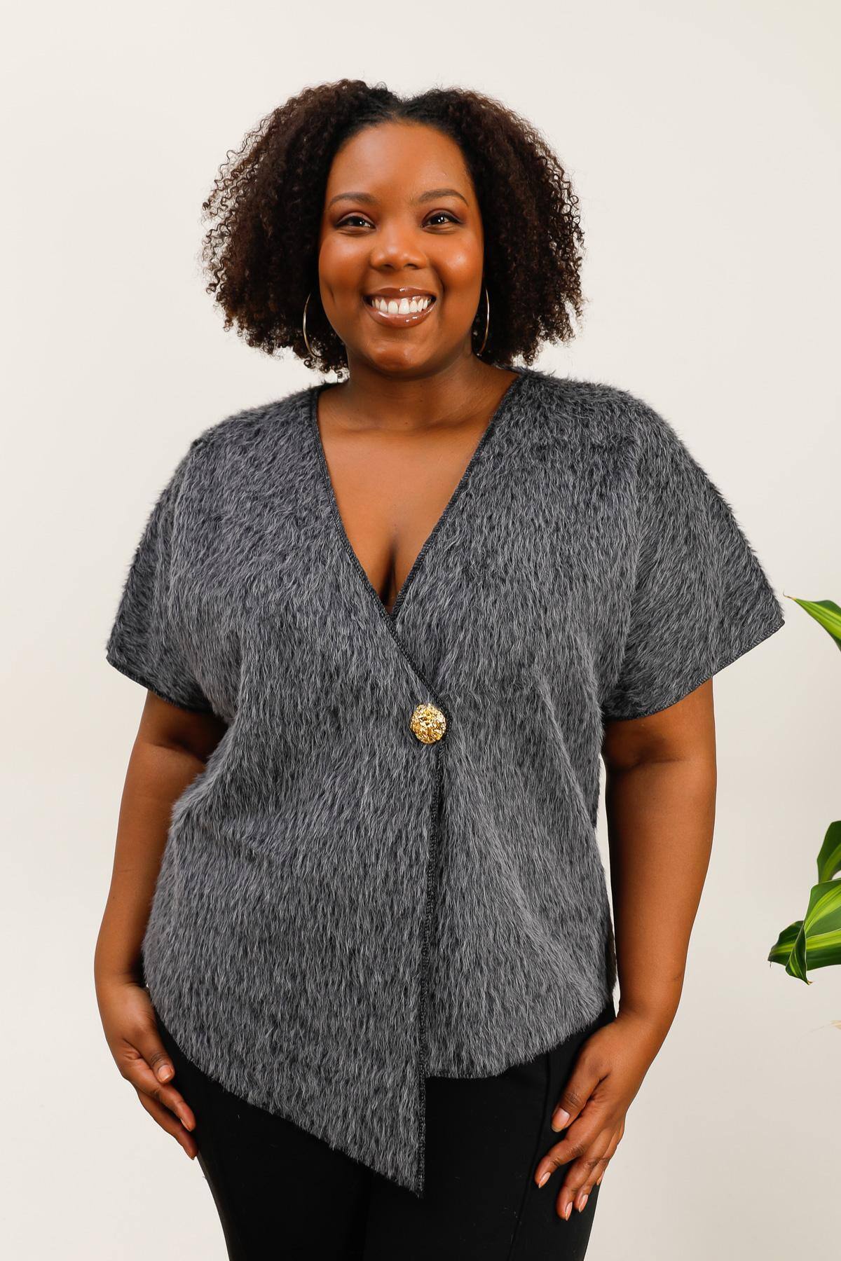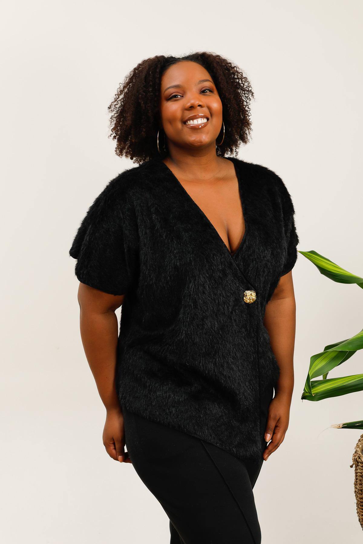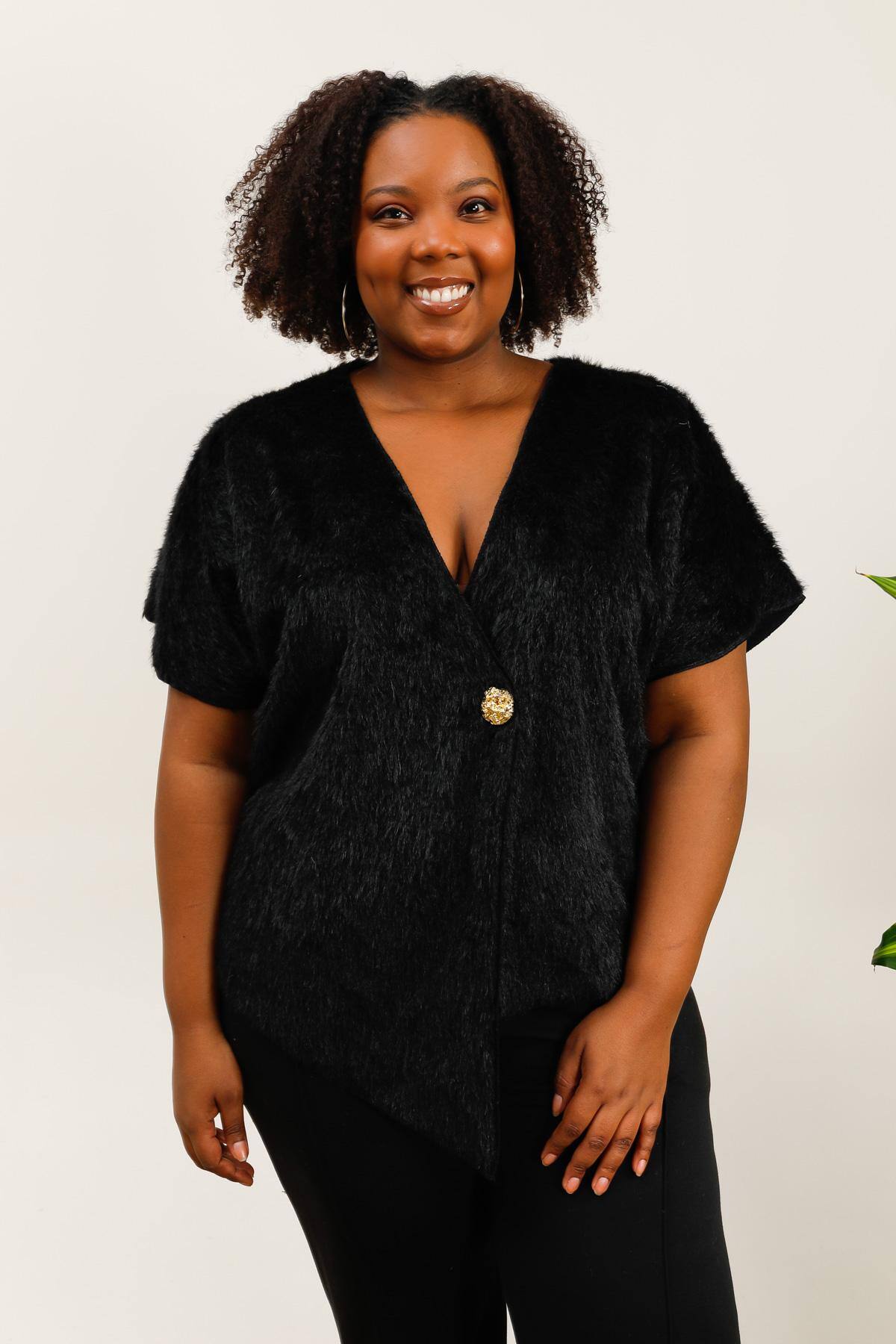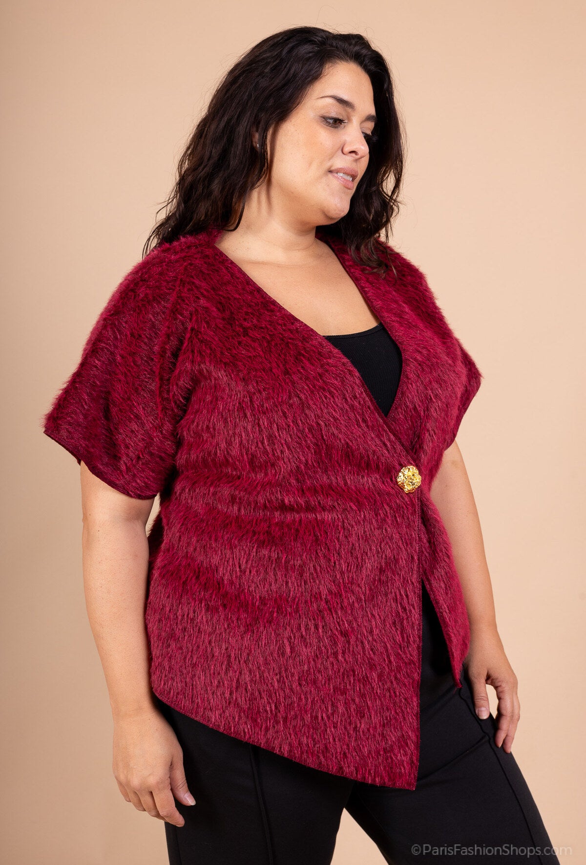 Gilet asymétrique en fausse fourrure avec bouton doré