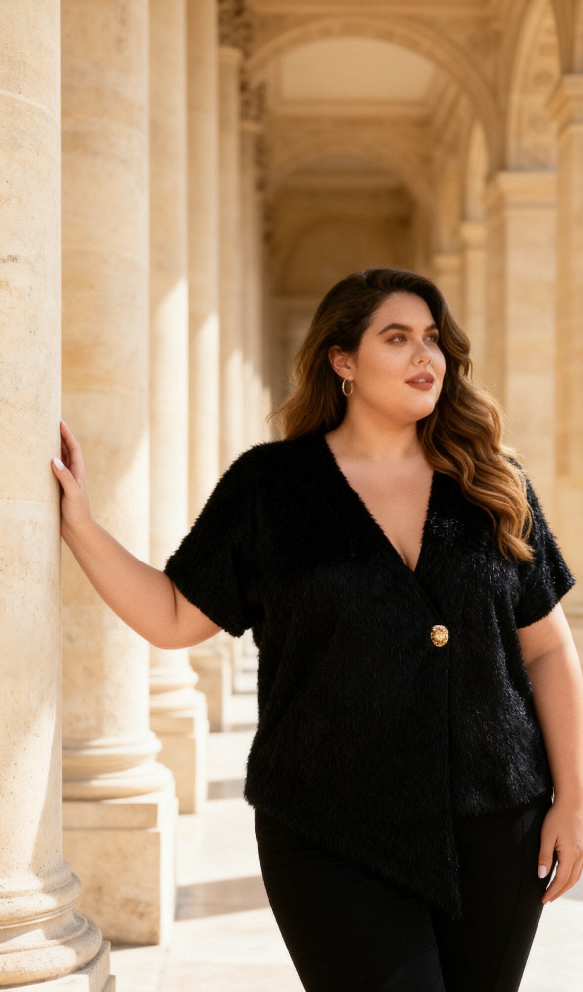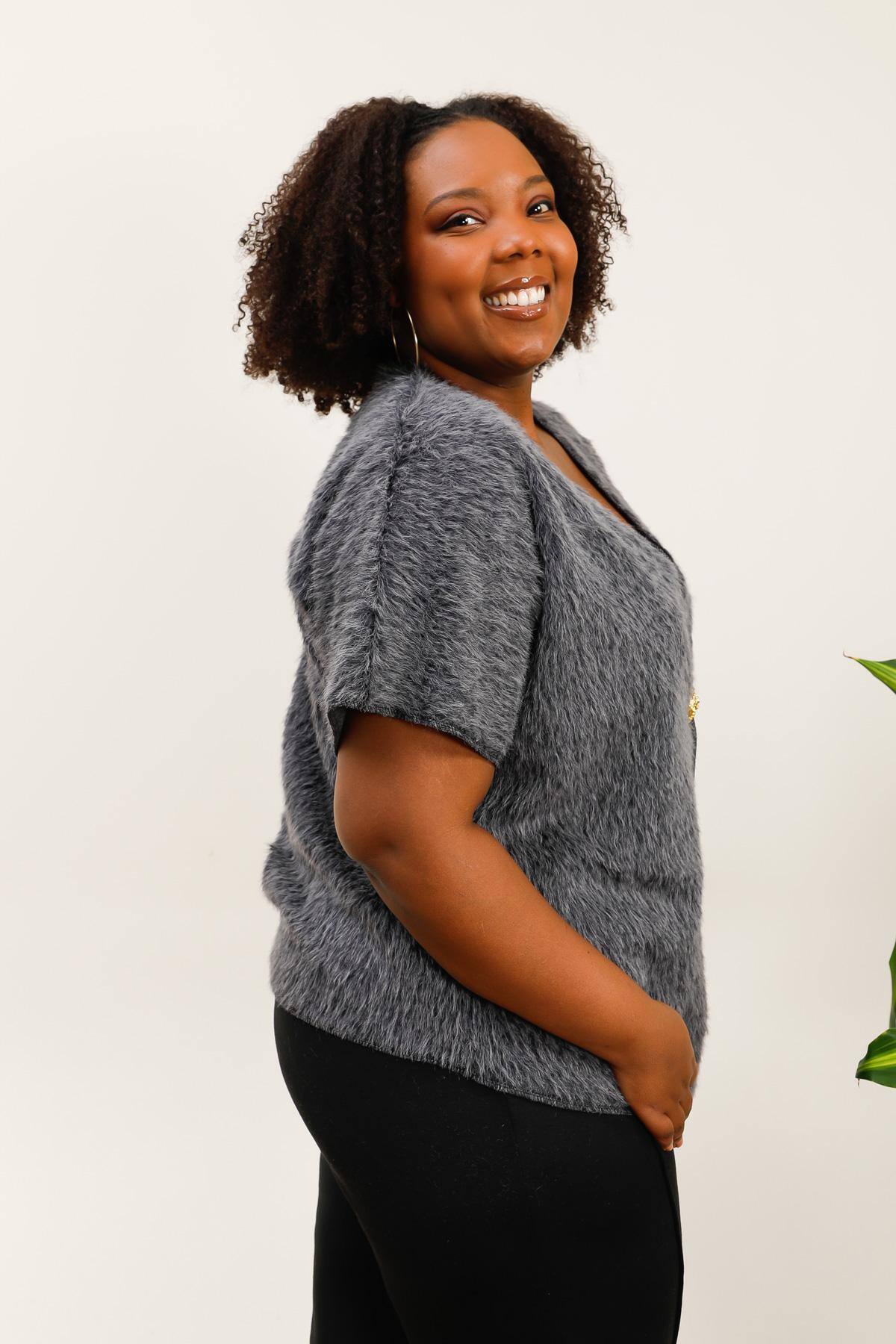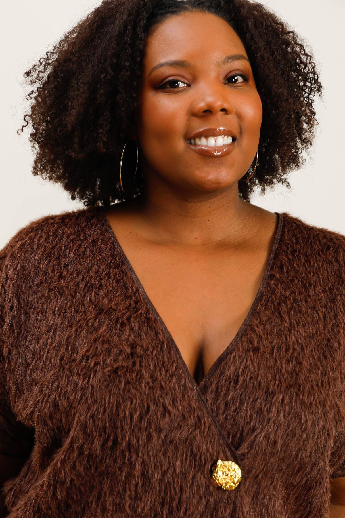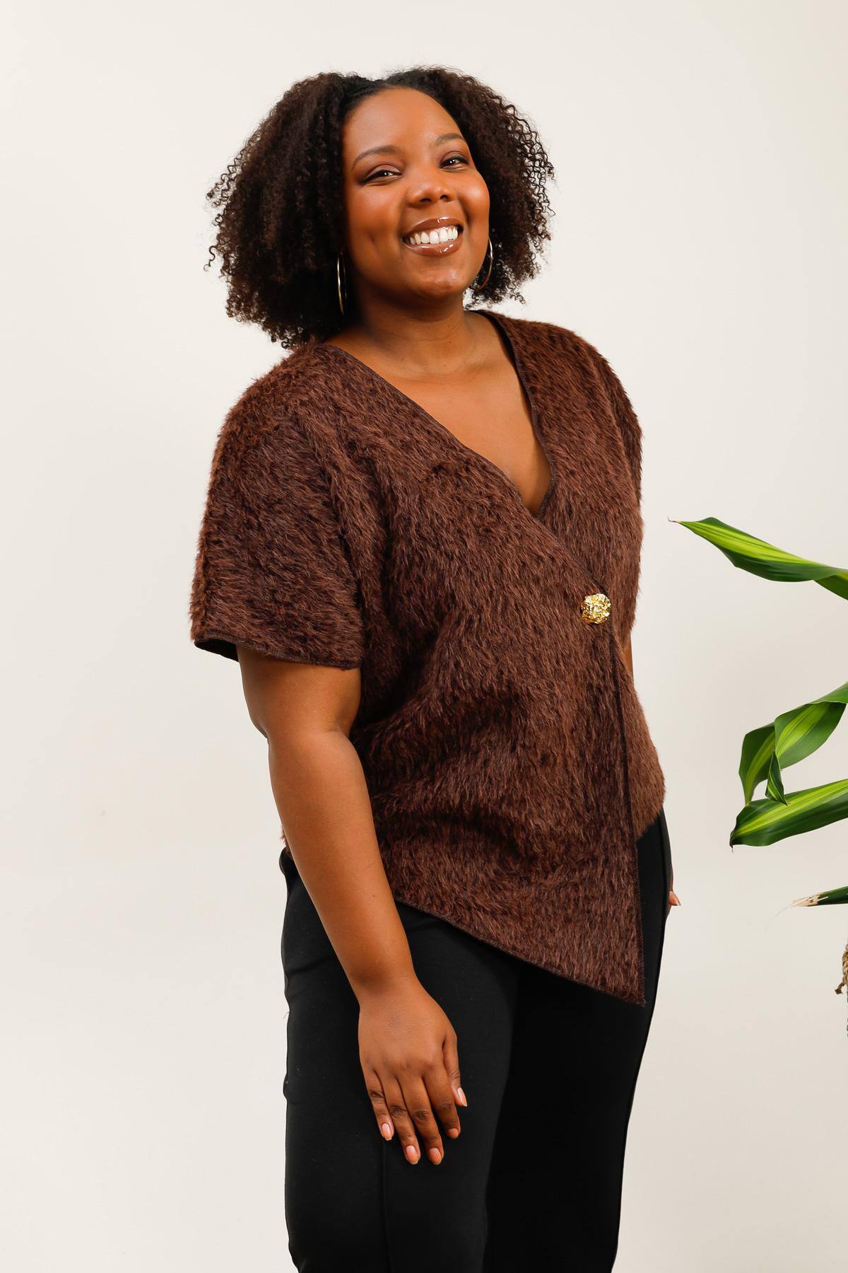 Gilet asymétrique en fausse fourrure avec bouton doré