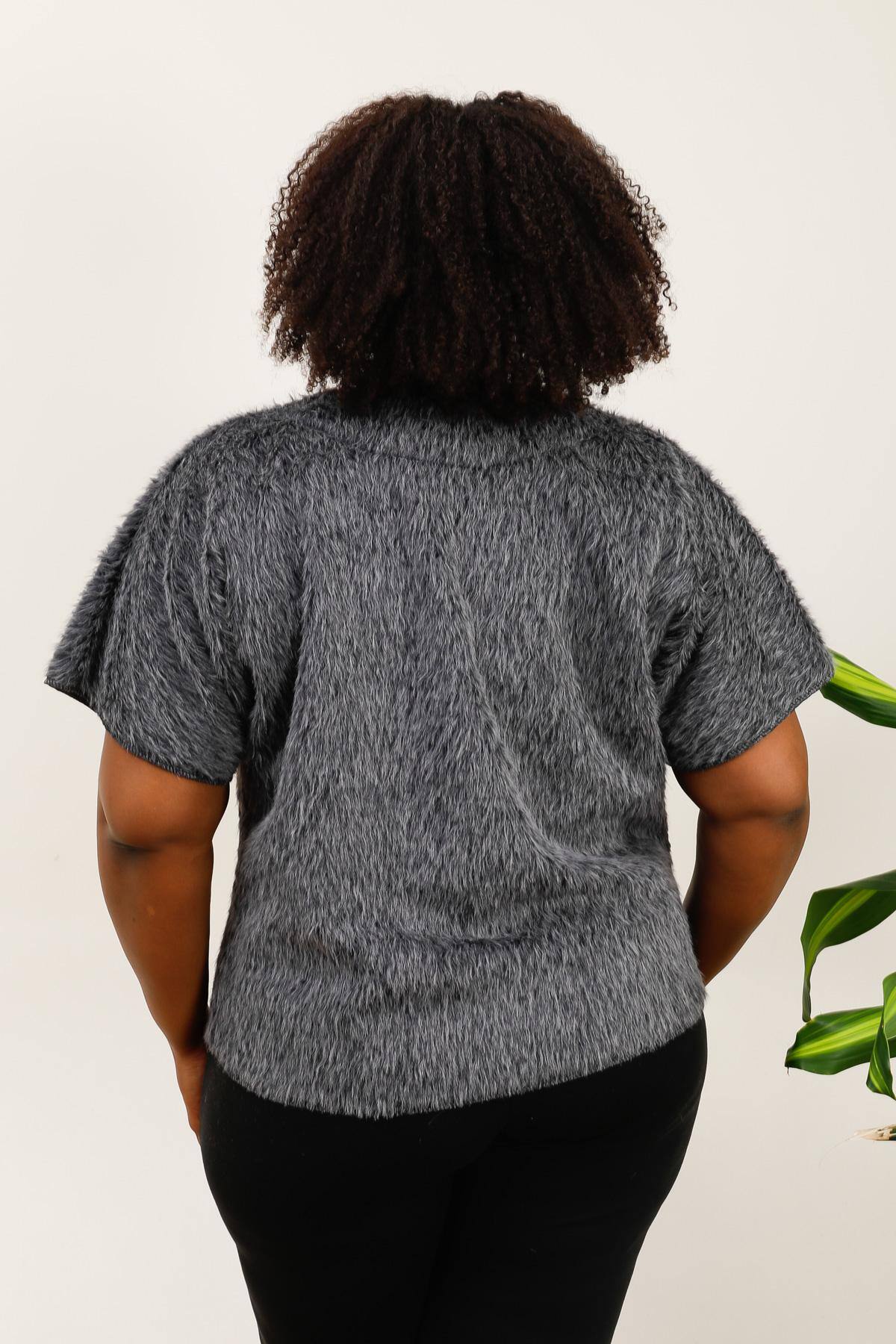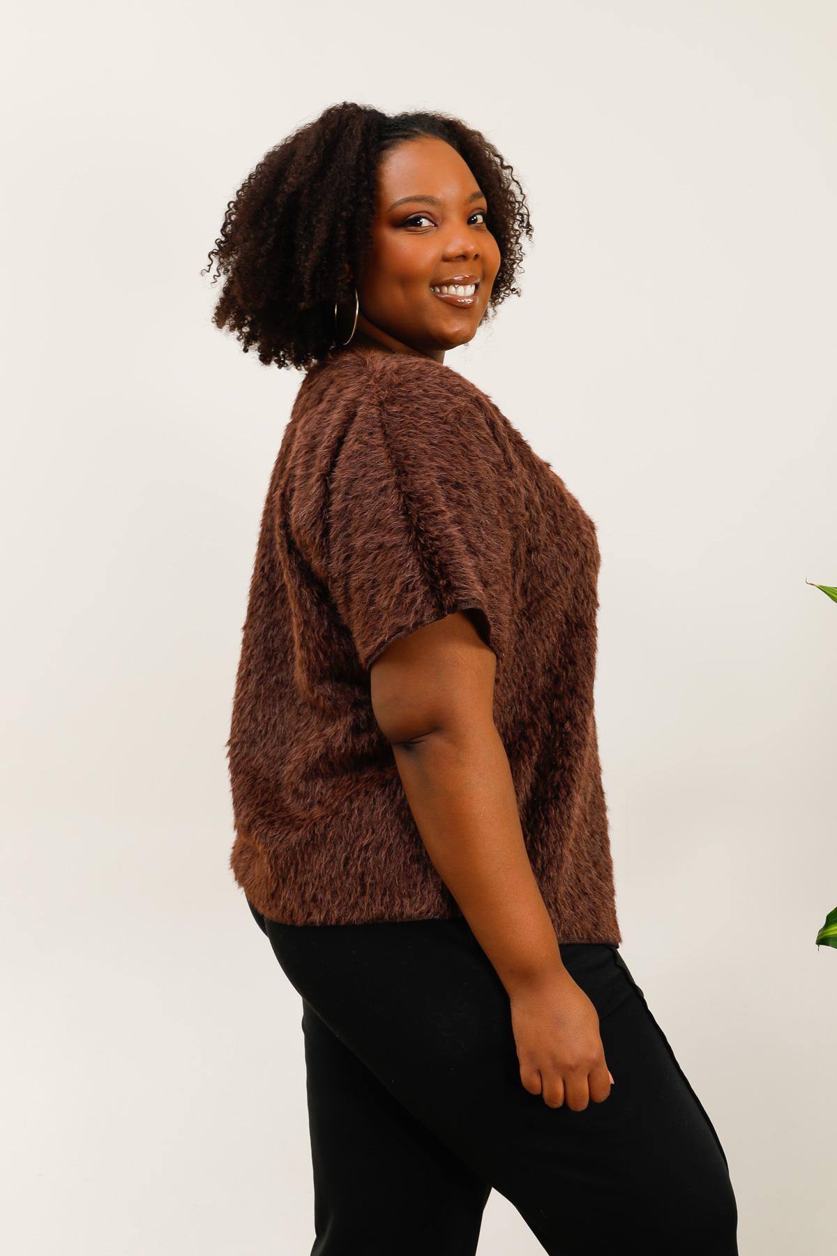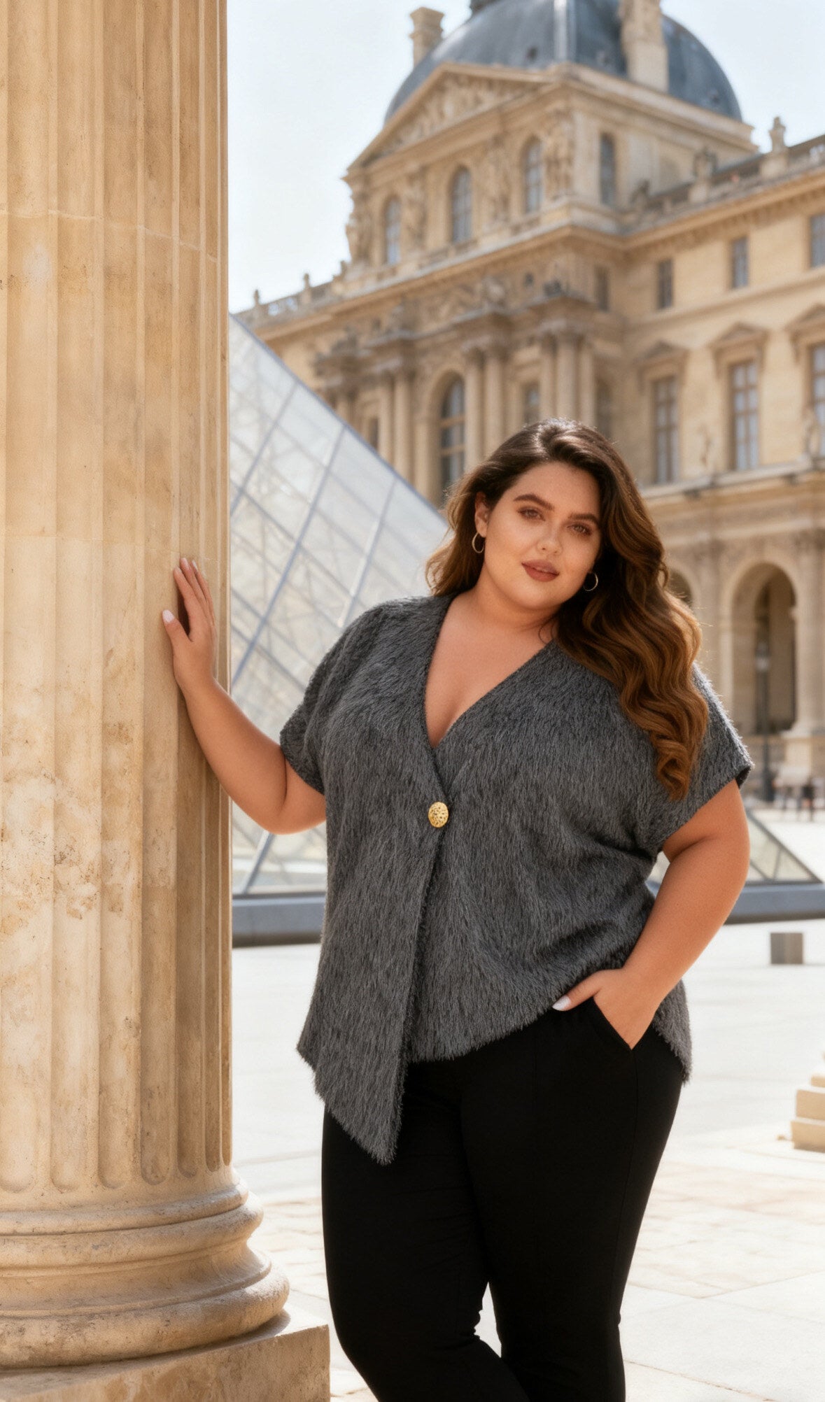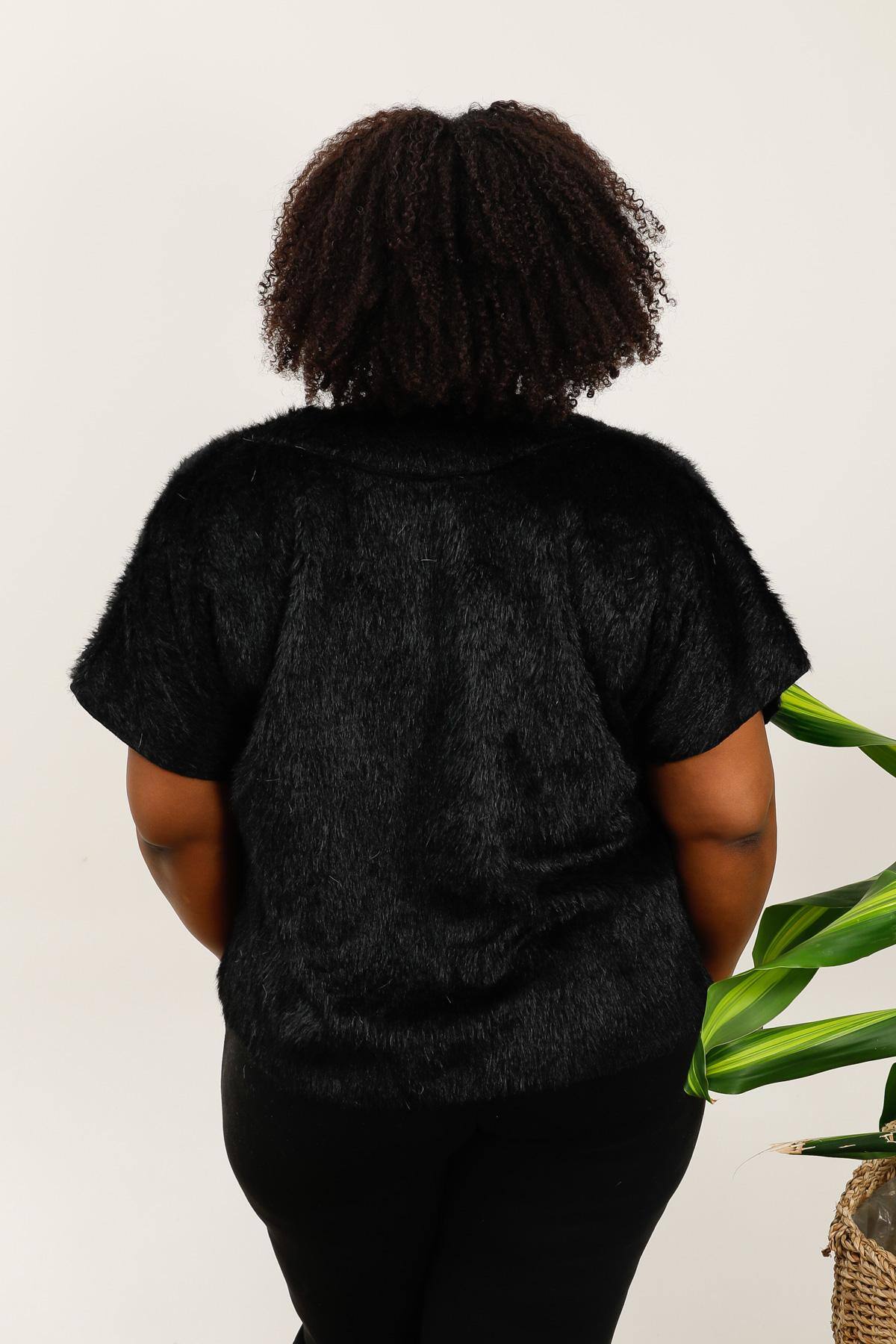 Gilet asymétrique en fausse fourrure avec bouton doré