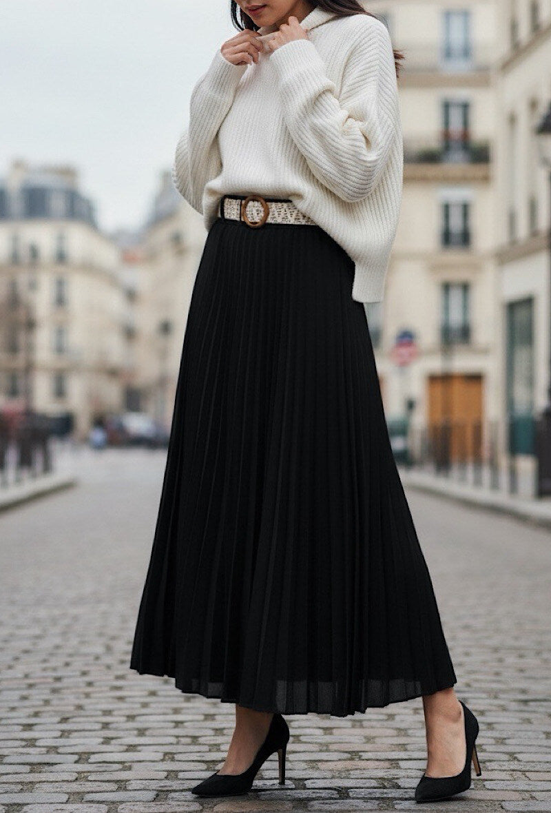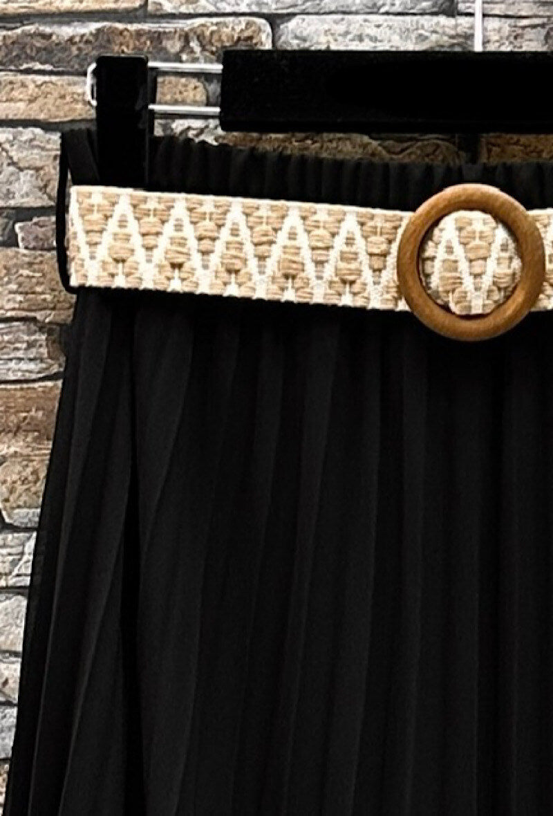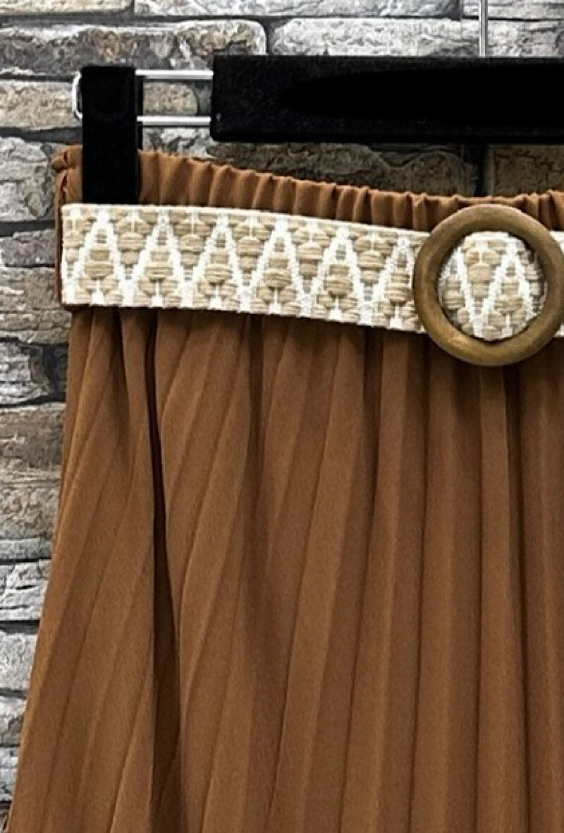 Jupe plissée très fluide avec doublure en viscose et ceinture bohème.